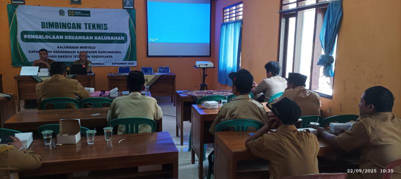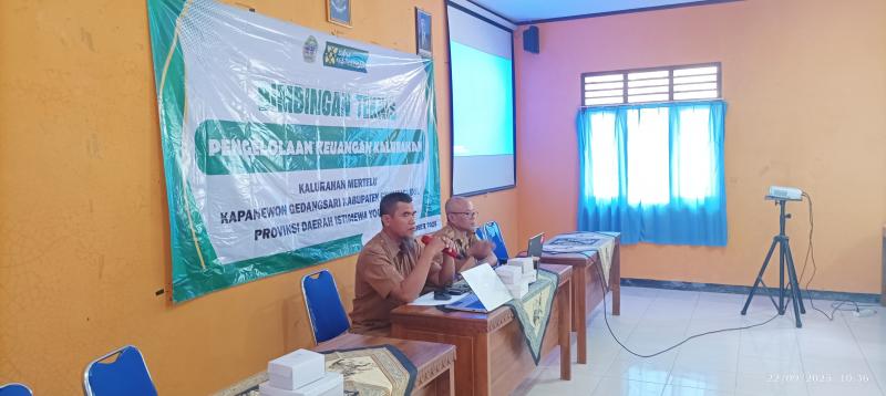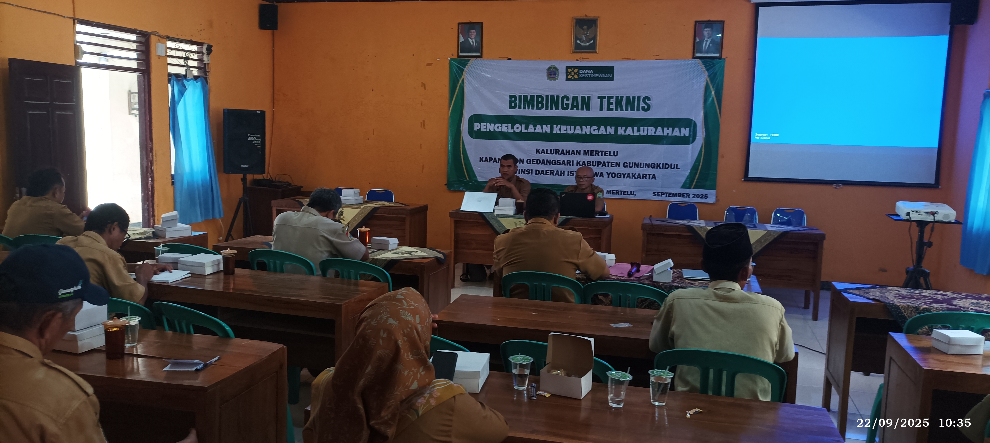 Kalurahan-Mertelu-Kapanewon Gedangsari. Dalam menjalankan APABKal Kalurahan Mertelu, Pamong Kalurahan diwajibkan memenuhi standart dalam pengelolaan keuangan kalurahan. Untuk itu pada hari senin 22 September 2025 di Kalurahan Mertelu dilaksanakan kegiatan bimbingan teknis pengelolaan keuangan kalaurahan.