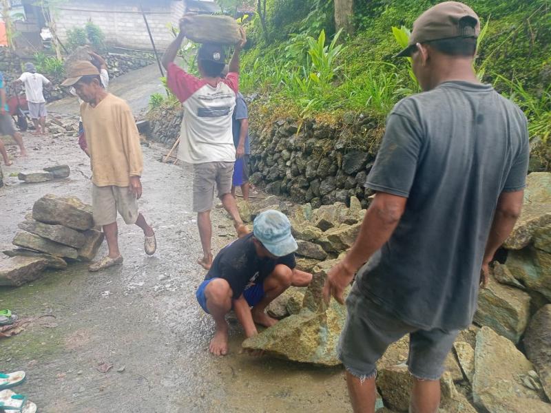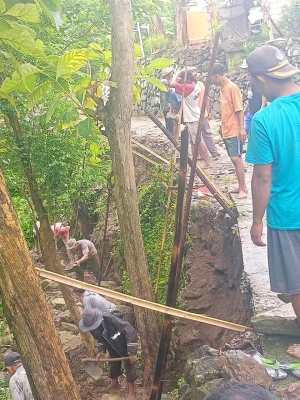 Warga Padukuhan Mertelu RT 04 RW 03 menggelar gotong royong kerja bakti untuk membenahi tanggul yang longsor akibat hujan deras di wilayah setempat dengan menggunakan peralatan sederhana guna mencegah kerusakan lebih lanjut dan mengurangi risiko bagi lingkungan sekitar.