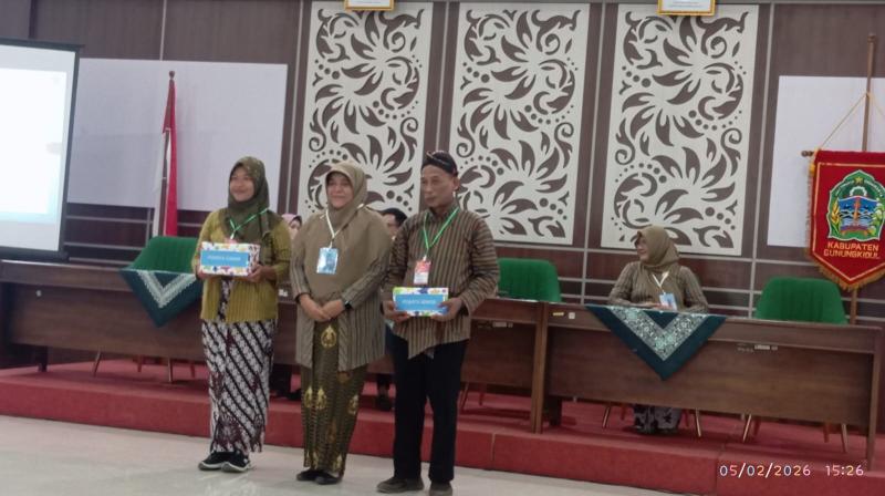 Peserta Bimbingan Teknis (Bimtek) yang berasal dari Kalurahan Mertelu menerima bingkisan dari Dinas Perpustakaan dan Kearsipan (Dispussip) Kabupaten Gunungkidul sebagai bentuk apresiasi atas partisipasi dan keaktifan mereka dalam mengikuti kegiatan tersebut. Penyerahan bingkisan ini diharapkan dapat menjadi motivasi bagi peserta untuk terus meningkatkan kapasitas dan peran aktif dalam pengembangan literasi serta pengelolaan perpustakaan di lingkungan kalurahan.