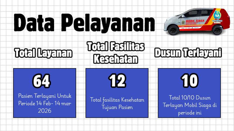 Berikut kami sampaikan Rekapitulasi Penggunaan Mobil Siaga Kalurahan Mertelu Periode Bulan Kedua periode 14 Februari -14 Maret 2026.
