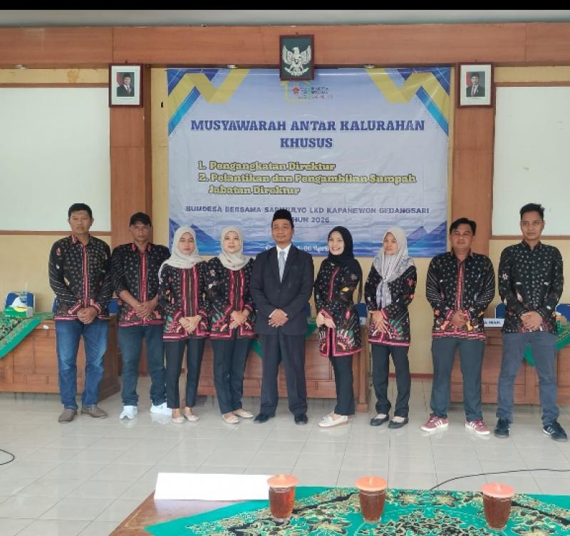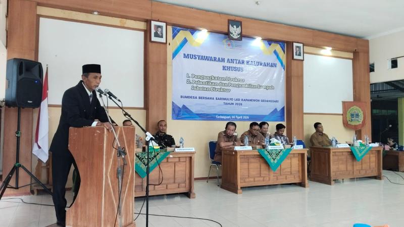 Gedangsari,6 April 2026-----------Musyawarah Antar Kalurahan Khusus yang diselenggarakan oleh BUMDesa Bersama Sarimulyo LKD Kapanewon Gedangsari pada Senin, 6 April 2026, berlangsung dengan tertib, lancar, dan penuh khidmat. Kegiatan ini dilaksanakan dalam rangka pengangkatan Direktur BUMDesa Bersama Sarimulyo, sekaligus pelantikan dan pengambilan sumpah jabatan direktur terpilih.
