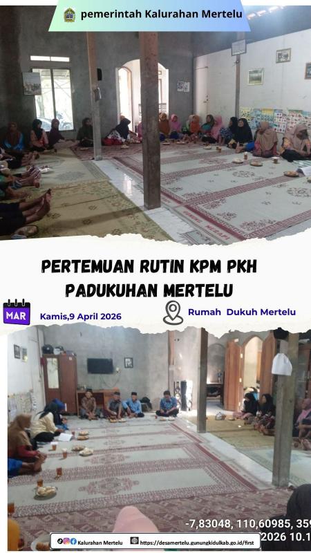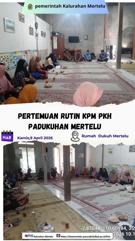 Mertelu, 9 April 2026 — Kelompok Penerima Manfaat (KPM) Program Keluarga Harapan (PKH) Padukuhan Mertelu kembali menggelar pertemuan rutin pada Kamis (9/4/2026). Kegiatan ini berlangsung di Rumah Dukuh Mertelu dengan dihadiri oleh para anggota KPM serta pendamping PKH setempat.